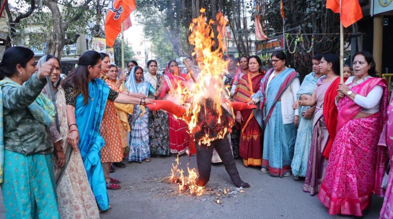 कांग्रेस विधायक फूल सिंह बरैया के दूषित बयान पर विरोध प्रर्दशन कर किया पुतला दहन
